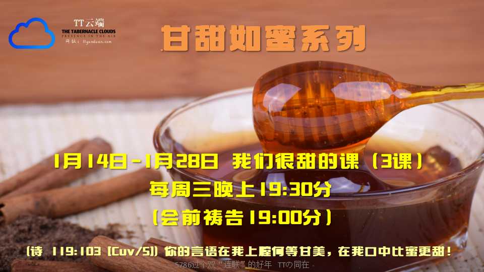 0.MainTT云端主页TTCloud.TT云端 PRESENCE IN THE AIR 神的同在,在空中 愿2026年, 风浪中遇见主, 风暴中经历主, 云彩中亲近主, 圣殿中亲密主。耶和华坐着为王,洪水泛滥;耶和华坐着为王,直到永远。诗篇 29:10 TT云端祝贺 愿5786连接连臂连行连贯连结临到你 愿2026联谊联钉联席联合联络成全你 过个双“连联”的好年!TT云端祝贺 TT云端来临精彩聚会 回顾上周直播课程 点击海报进入各系列页面——————————————————————————————————————————————到站访次 0 关注我们的频道 Rhema神的话 - 我们の课程点击海报进入各系列页面 七个生命核心根基系列- - - 甘甜如蜜系列-我们很甜- - 5786.2026系列- TT云端秋季贺岁特约- TT云端2026跨年特约-甘甜如蜜系列- TT云端春节贺岁特约-灵的人参6.0-七个生命核心根基 Makarios启示录 (启 1:3 [Cuv/S]) 念这书上预言的和那些听见又遵守 其中所记载的,都是有福的,因为日期近了。 5785.2025系列- TT云端秋季贺岁特约- TT云端2025跨年特约- TT云端春节贺岁特约 战胜哈曼系列- 胜过哈曼的众子- 胜过哈曼的朋友- 我们一起操练胜过(蓝房、铭心) 5784.2024系列- TT云端犹太新年特约- TT云端2024跨年特约- TT云端春节贺岁特约 我的圣灵系列 5783.2023系列- TT云端犹太新年特约- TT云端2023跨年特约- TT云端春节贺岁特约 眼泪系列 属灵真相与当代世界 5782.2022系列 TT云端春节贺岁特约 TT云端跨年特约 神的代祷者系列 精英讲座系列 泥土系列 灵的成长系列点击海报进入各系列页面 Pnuema神的灵-我们の敬祷 与主“铭心”时刻我们谈心,我们交心,我们说心 ,我们与彼此连心,我们与主铭心 蓝房300TT云端祷告歌唱敬拜房间 (士 7:7 [Cuv/S]) 耶和华对基甸说:我要用这餂水的三百人拯救你们.... 我们の敬拜祷告网聚会系列 FLOW OF HOLY SPIRIT 圣灵的流 灵的人参 40 5.0(5785-2025)---灵的人参40 3.0(5783-2023)我们约好了一起每年禁食四十天 TCréative创作+-我们の创作T Créative创作+先知性绘画 先知性绘画-赛 4.23 先知性绘画-诗 66.12 T Créative创作+新歌 我们的联系 我们谈心,我们交心,我们说心 Email 邮件:[email protected] Enigma 隐匿码:ttyunduan 联系我们请在浏览器中启用JavaScript来完成此表单。Name 姓名 *Email 邮件 *Testimony or Prayer Request 见证分享与代祷需要 *Send Message 发送 回到主页